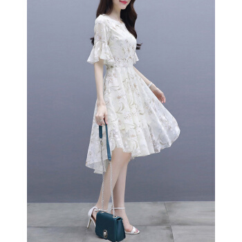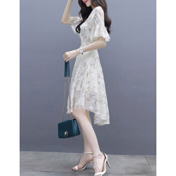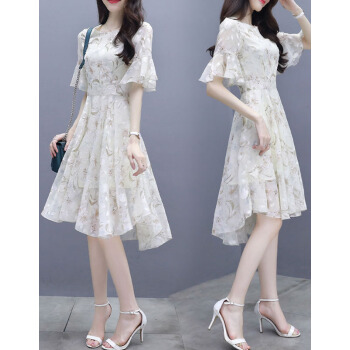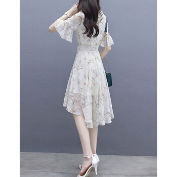 连衣裙>>莱倪晟纳夏季女装连衣裙新品裙子女夏2020年新款韩版中长款时尚性感显瘦印花两件套装沙滩裙 米白色 请拍正确尺码