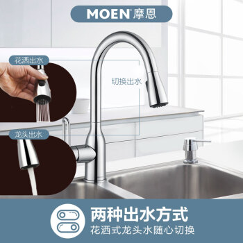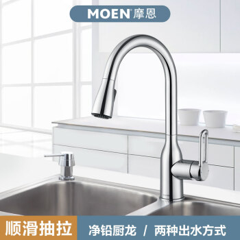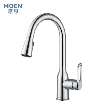 摩恩(MOEN)全铜冷热水抽拉龙头 高抛净铅健康龙头 恒芯阀芯抽拉式厨房龙头GN68002