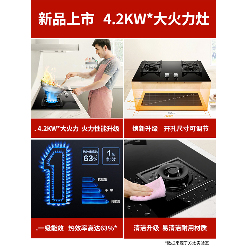 HT9BE 多开孔尺寸 4.2KW*大火力 一级能效 易清洁 燃气灶【钢化玻璃/黑色】