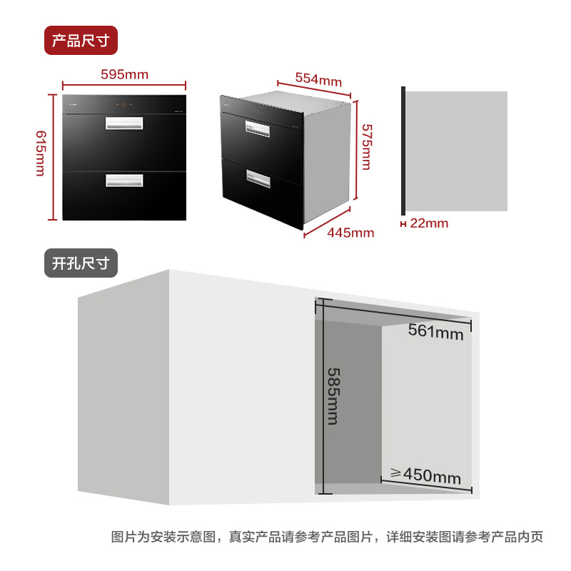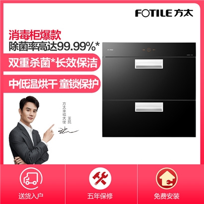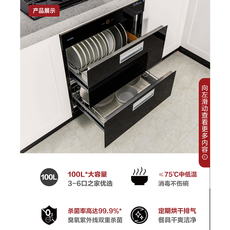 集成灶>>J45ES 二星消毒 自动烘干除湿 100L*大容量 紫外线+臭氧双重杀毒 消毒柜【钢化玻璃/黑色】
