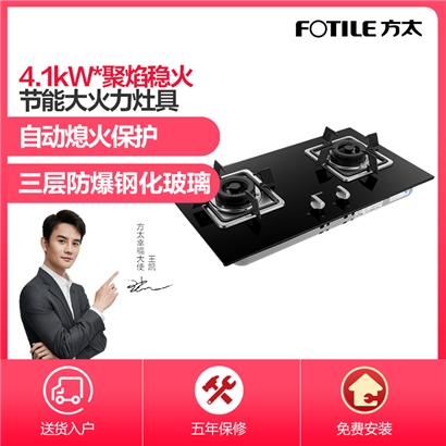 FD23BE 三层防爆钢化玻璃 4.1KW*大火力 自动熄火保护 燃气灶【钢化玻璃/黑色】