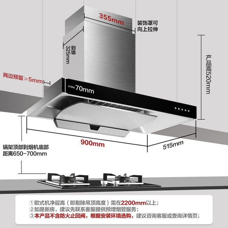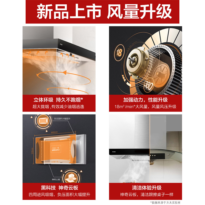 EMC7 立方环吸技术 18m3/min*大风量 易清洁易打理 欧式抽油烟机【不锈钢+钢化玻璃/黑色】 |