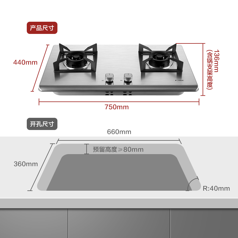HT8GE 耐高温 4.1KW*大火力 一级能效 易清洁 不锈钢 燃气灶【不锈钢/不锈钢色】