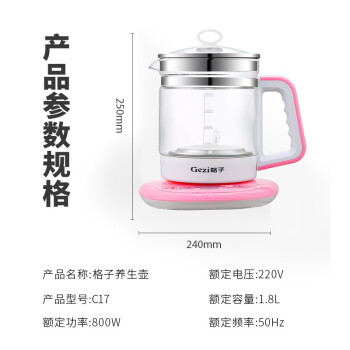格子GZ-C17 养生壶全自动玻璃多功能电热花茶壶家用煮茶器办公室小型电热水壶家用煮水壶玻璃养身茶壶 樱花粉C17