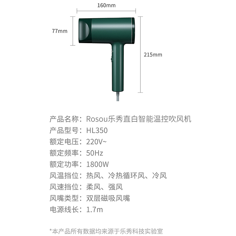 直白HL350负离子护发电吹风机速干家用大功率绿冷热变频风筒【ABS/绿色】