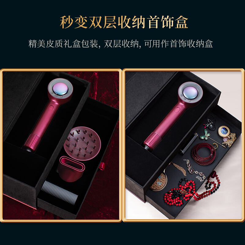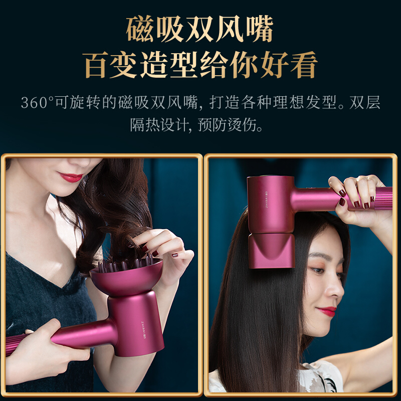 直白HL906负离子高速吹风机磁吸双风嘴低温护发黑科技变频风高端礼盒吹风机【ABS/红色】