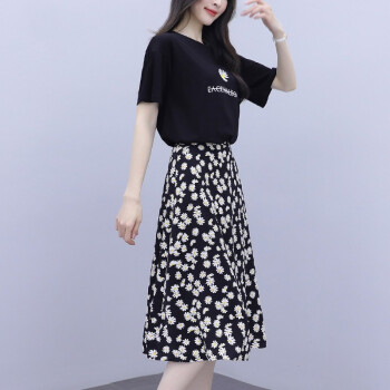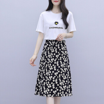 茵艾曼女装连衣裙女修身显瘦夏季2020新款小雏菊流行套装裙子泫雅风碎花两件套装小个子 A268白色 L《107-117斤》 |