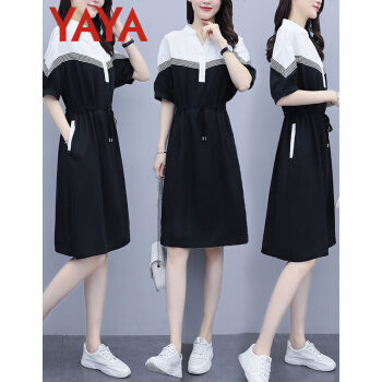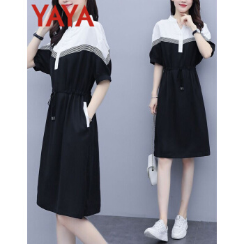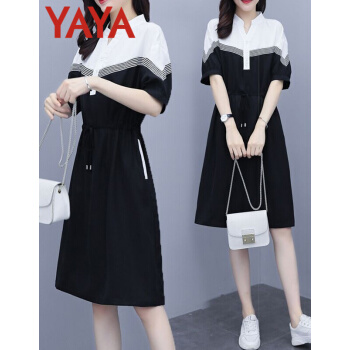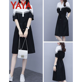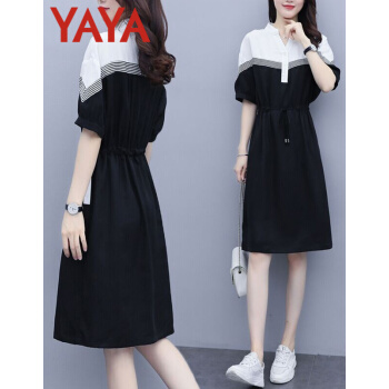 鸭鸭服饰(yaya)连衣裙女2020女装夏季新款大码女装气质显瘦中长款收腰减龄裙子女 黑色 请选正确尺码