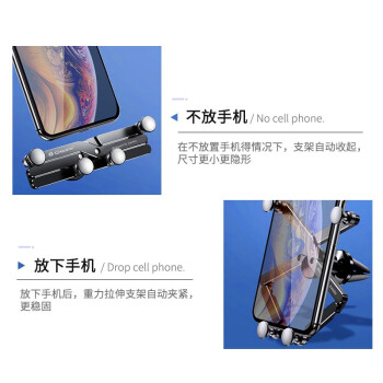 Glazata车载手机支架汽车手机支架自动导航重力感应车载支架车内导航配件出风口卡扣式汽车用品装饰品 枪色【轻质金属车载支架】