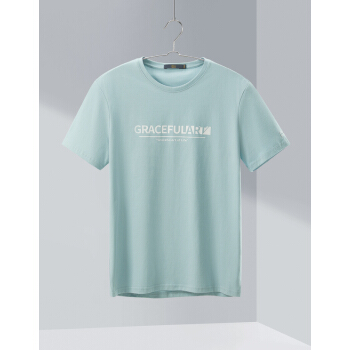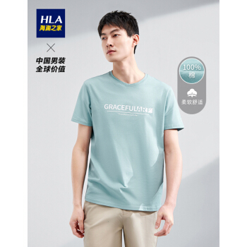 HLA海澜之家舒适半袖短袖T恤2020夏季新品圆领字母印花套头衫男HNTBJ2Q137A 浅绿花纹D7 175/92A/L