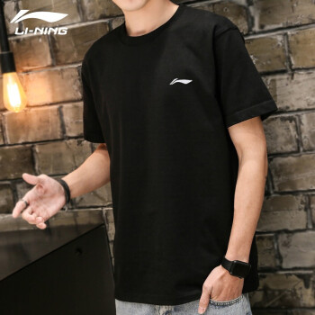 短袖T恤>>李宁(LI-NING)T恤夏季新品休闲系列男子圆领速干透气上衣跑步健身短袖运动服 -6新标准黑 L(175)