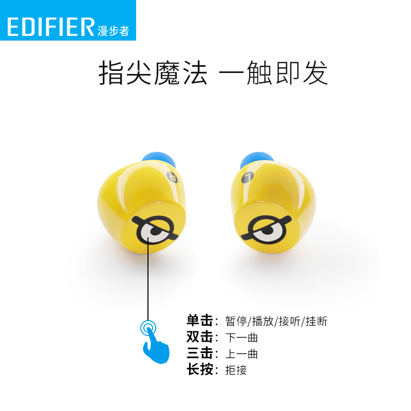 漫步者(EDIFIER)W3“小黄人”定制版 真无线蓝牙耳机【塑料/黄色】