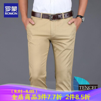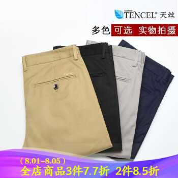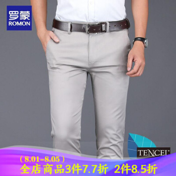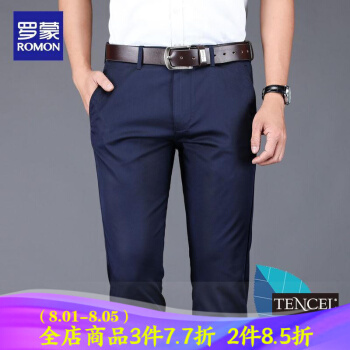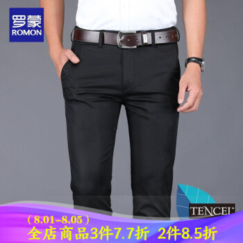 西裤>>罗蒙冰丝休闲裤男士商务休闲直筒宽松夏季薄款天丝弹力青年西裤修身西服裤子正装免烫 黑色 32 2尺5腰围