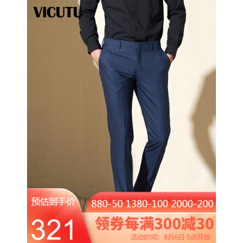 威可多VICUTU男士套西裤羊毛蓝色时尚修身商务西服裤VRS18121936惠 蓝色 180/90A