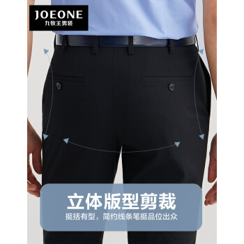 九牧王西裤男春夏季修身西服裤男士抗皱免烫商务正装休闲男裤子官方店 TA2021733+黑色+标准版 35.5码2.76尺92厘米