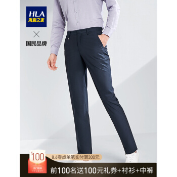 西裤>>HLA海澜之家基础商务西裤2020春季新品合金锗纤维条纹裤子男HKXAD1Q002A 藏青条纹02 185/100A