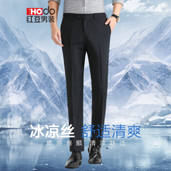 红豆(Hodo)男装 西裤男 商务休闲男士冰凉丝透气修身中腰西裤 B5藏青色 165/78A(31)