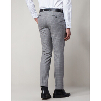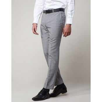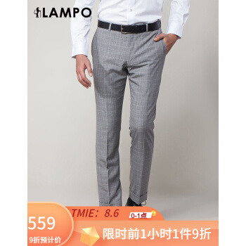 LAMPO/蓝豹春夏商场同款男士西裤商务浅灰底格林格全羊毛套装西裤超修身西服裤 浅灰底格林格 84
