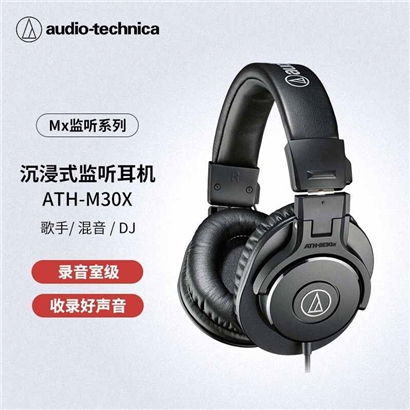铁三角(Audio-technica)ATH-M30X 专业影视制作监听耳机 头戴式专业录音HIFI监听耳机 封闭式便携可折叠