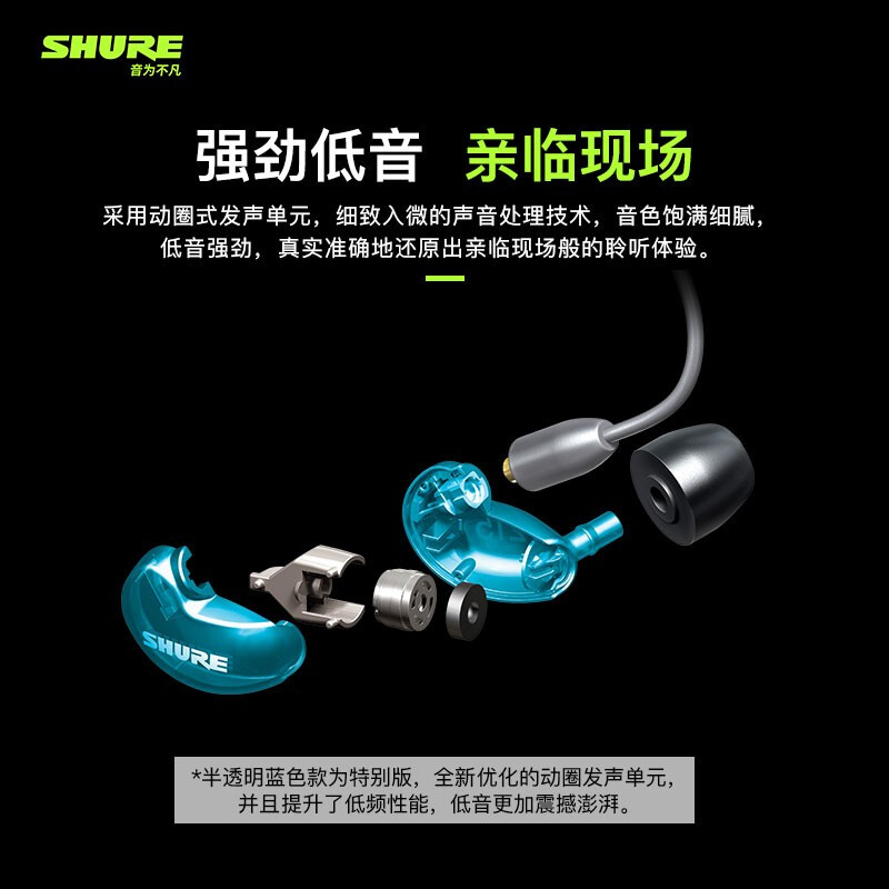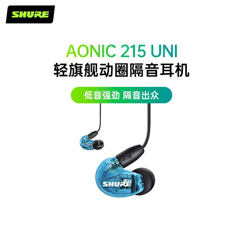 舒尔 Shure Aonic215 UNI动圈有线耳机 入耳式专业影视制作监听耳机 专业录音HIFI监听耳机 蓝色