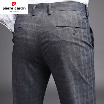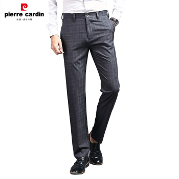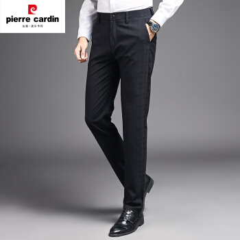 西裤>>皮尔卡丹(pierrecardin)春夏新款中青年男式休闲裤薄款直筒格子百搭西裤爸爸装男士长裤潮针织 黑色 33