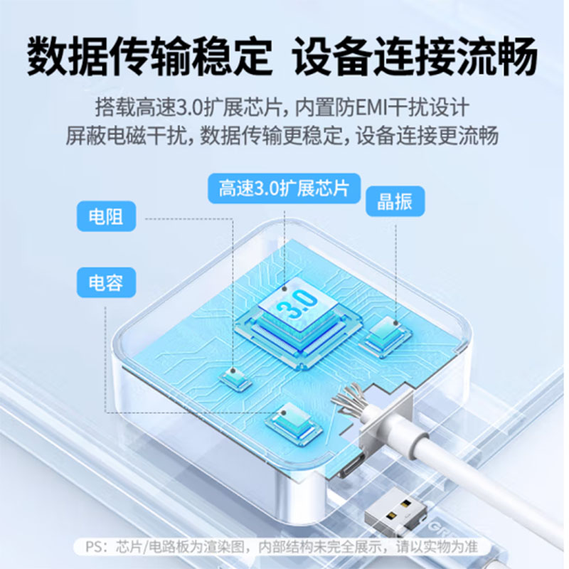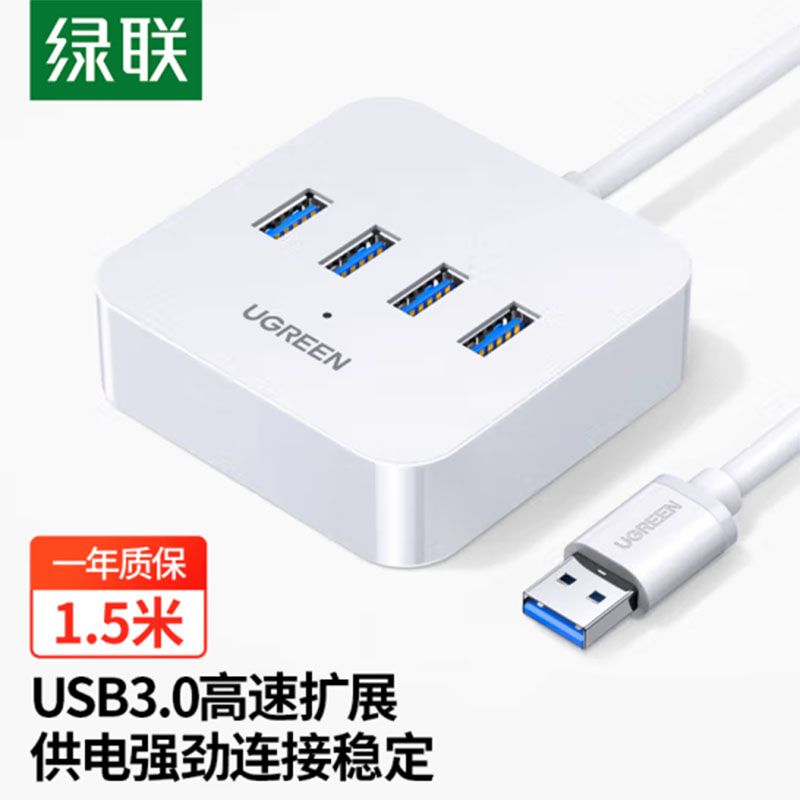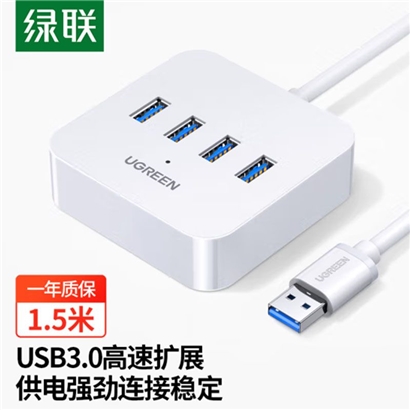 绿联 30221 USB3.0分线器扩展坞1.5米 一拖四多接口转换器