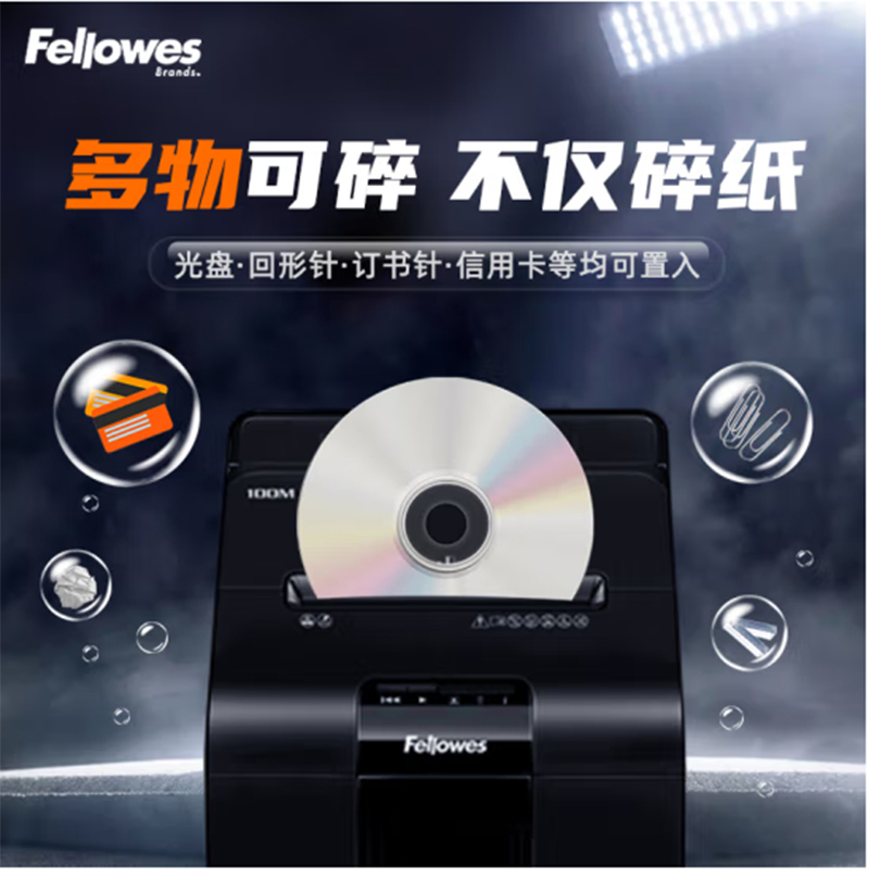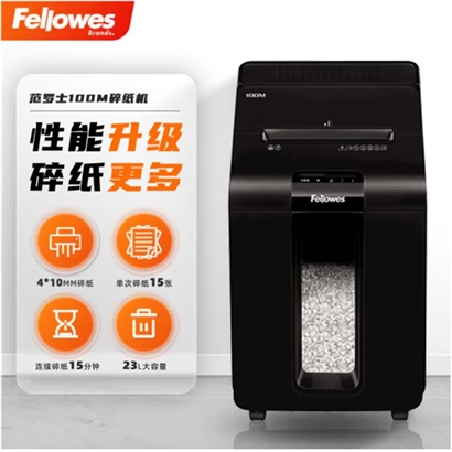 范罗士(Fellowes) 100M 五级保密全自动中型商用办公碎纸机 (自动100张 23L 15分钟 可碎卡/文件 安静降噪)