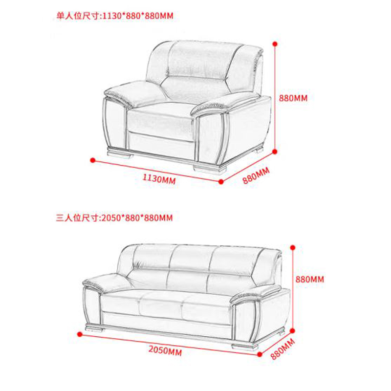 隆旭 S-028西皮三人位会客接待沙发商务皮沙发