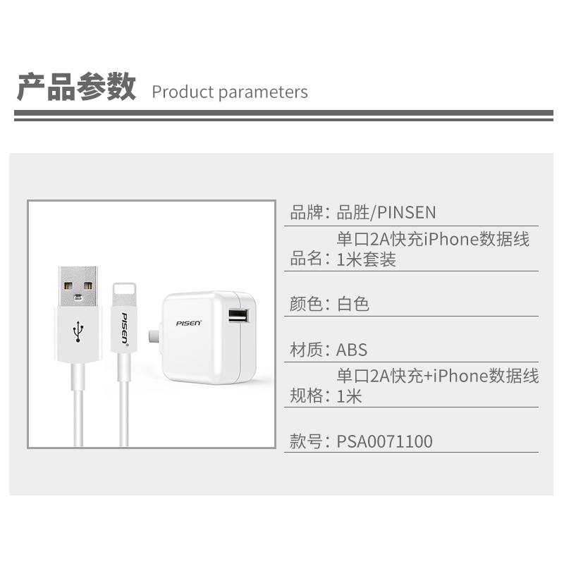 单口2A快充iPhone数据线1米套装【ABS/白色】