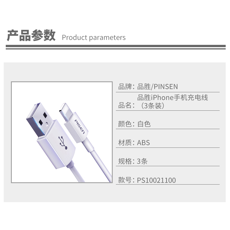 iPhone手机充电线(3条装)【ABS/白色】