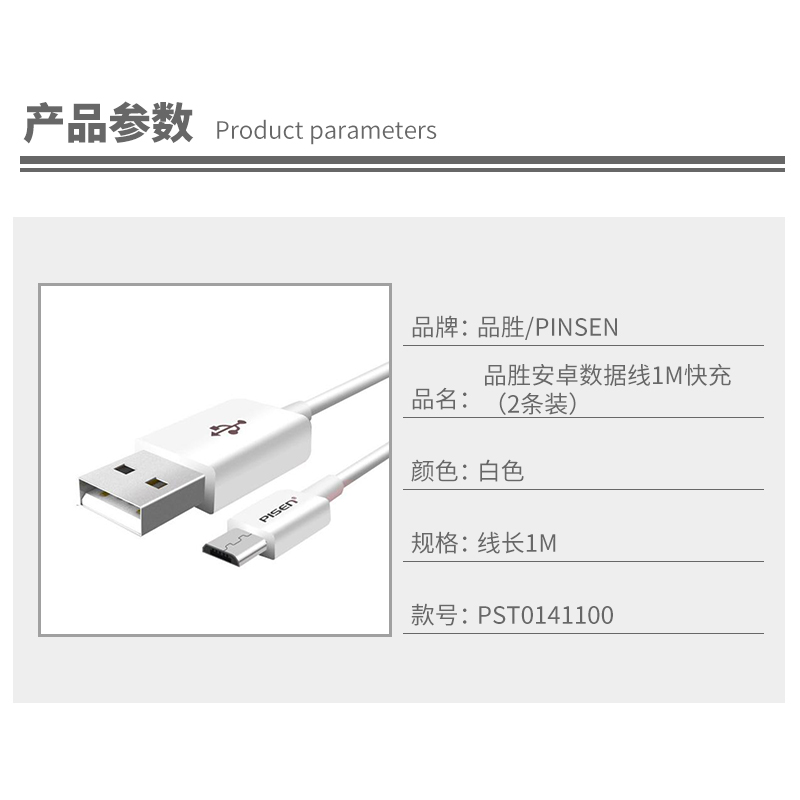 安卓数据线1米(2条装)【ABS/白色】