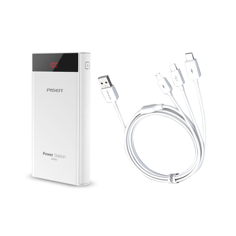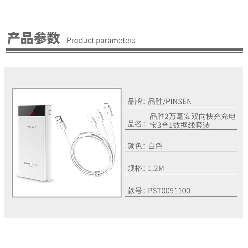 2万毫安快充充电宝3合1线套装【ABS/白色】