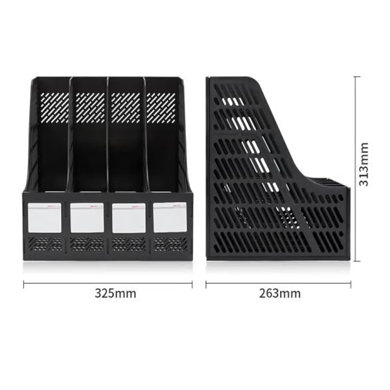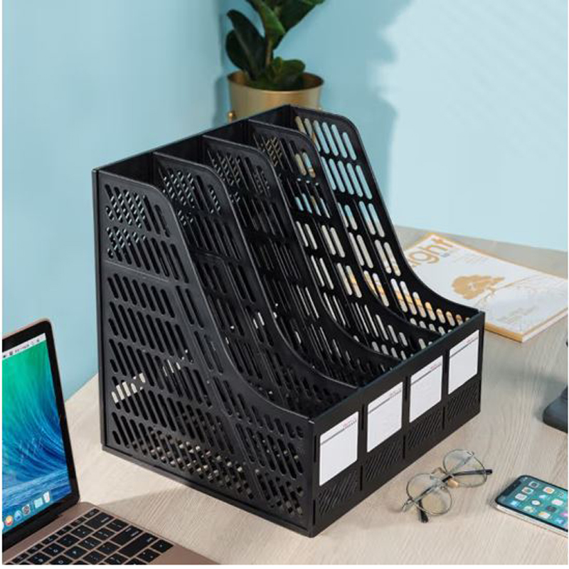 得力(deli) 9848 四联镂空桌面文件框 办公室桌面多层资料架子四栏带标签稳固文件栏 黑色