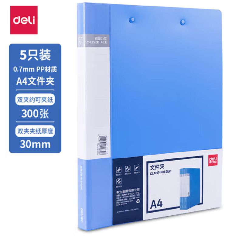 得力(deli)5只A4金属双强力文件夹 33296蓝色