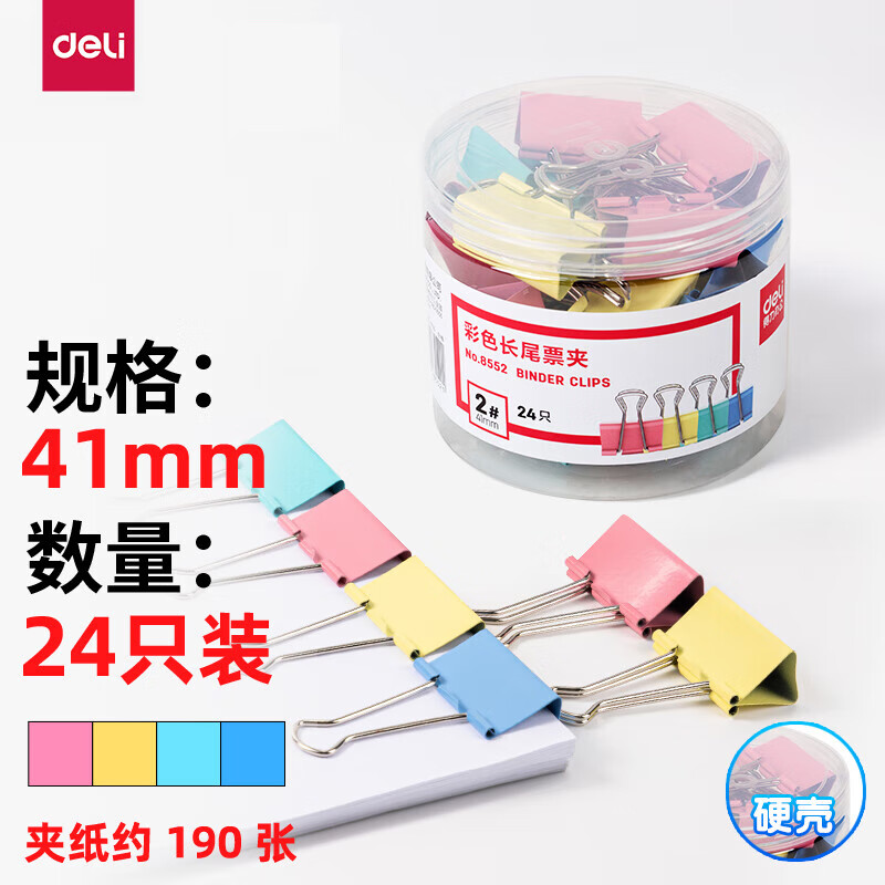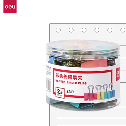 得力8552S-2#彩色长尾夹票夹 41mm 24只