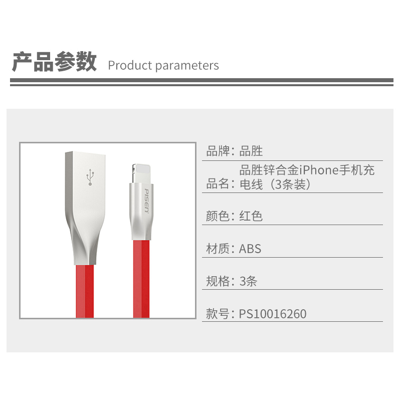 锌合金iPhone手机充电线(3条)【ABS/红色】