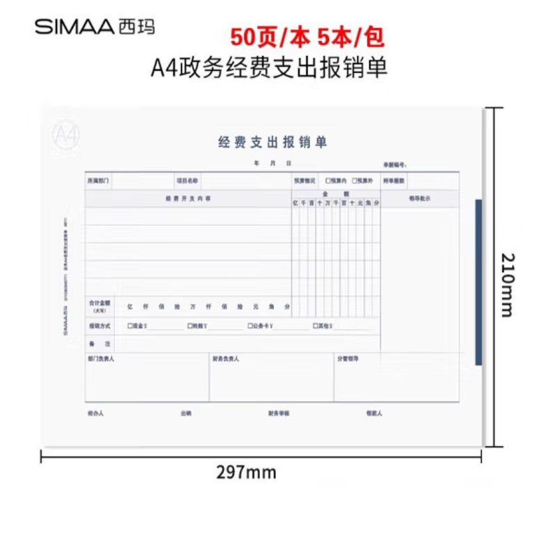 西玛(SIMAA)政务经费支出报销单A4纸大小297*210mm 50页/本 5本/包8811