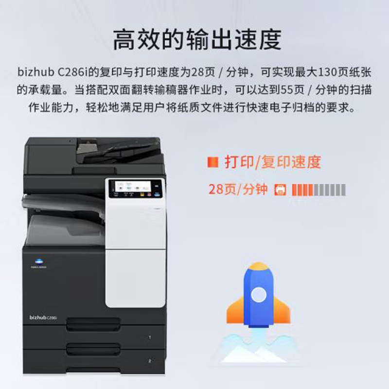 柯尼卡美能达 KONICA MINOLTA bizhub C286i打印机办公A3彩色复合机打印复印双面自动输稿器+双纸盒+工作底柜