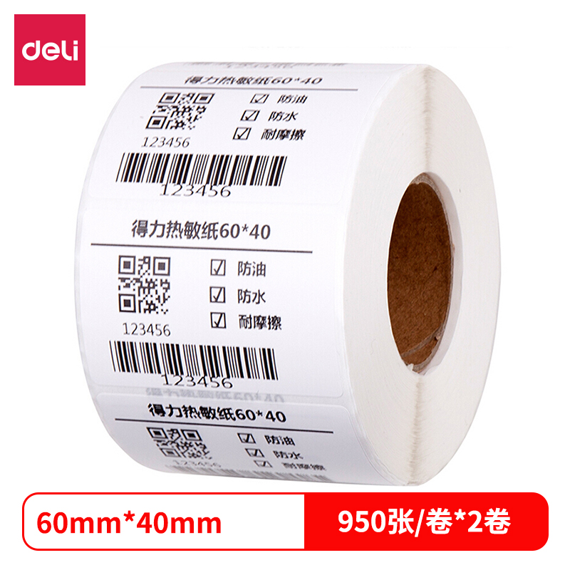 得力12002三防热敏标签纸(60*40mm-950张)(白)(2卷/筒)