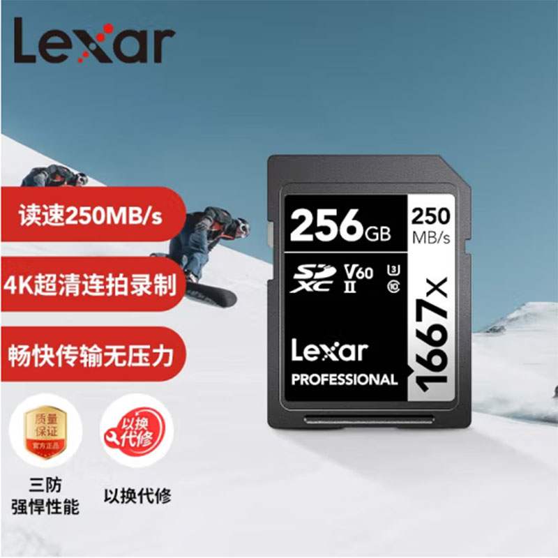 雷克沙(Lexar)256GB 高速SD存储卡U3