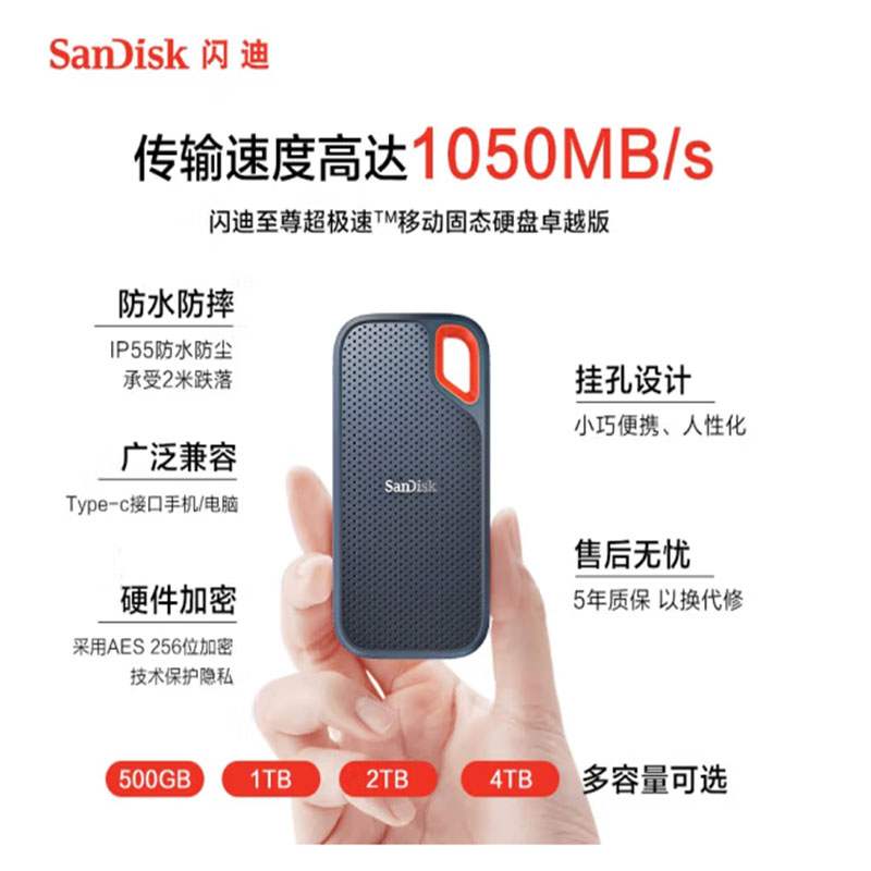 闪迪 4TB Type-c 移动固态硬盘(PSSD)E61极速移动版