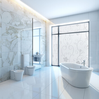 斯图sitoo 加厚磨砂玻璃贴纸贴膜卫生间浴室办公室窗花纸窗贴防水防晒透光不透明 1108白弯曲花90cm*2m
