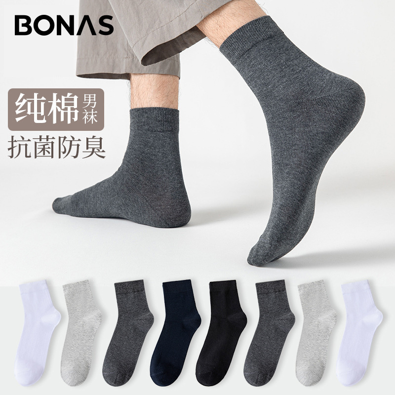 秋冬纯棉抗菌中筒袜 均码 黑色 袜子