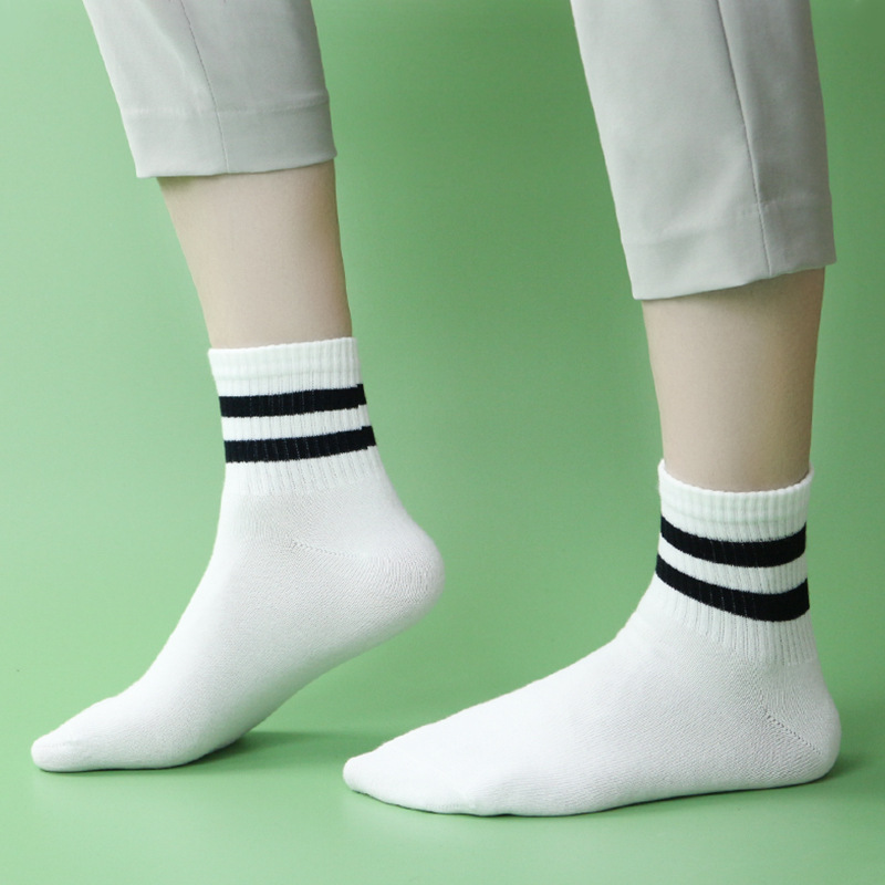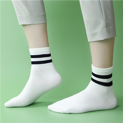 秋冬透气条纹中筒袜 均码 白黑色 袜子