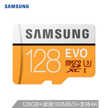 手机存储卡>>三星(SAMSUNG)128GB TF(MicroSD)存储卡 U3 C10 4K EVO升级版 传输速度100MB/s(新老包装随机发货)