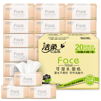 洁柔(C&S)抽纸 粉Face 柔韧3层120抽面巾纸*20包 无香(M号纸巾 面子系列可湿水 婴儿纸)整箱销售 |
