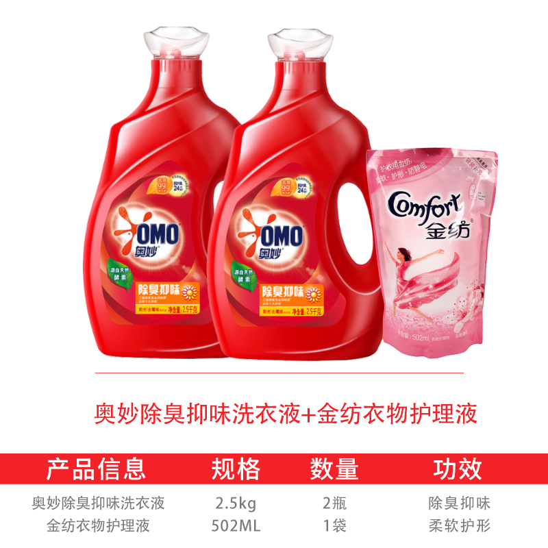 奥妙除臭抑味洗衣液2.5kg*2+金纺502ml组合