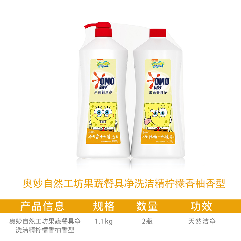 自然工坊果蔬餐具净洗洁精柠檬香柚香型2*1.1KG