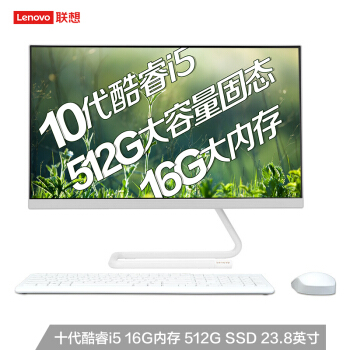 联想(Lenovo)AIO520C 微边框一体台式机电脑23.8英寸(十代i5-10210U 16G 512G SSD 无线键鼠)白
